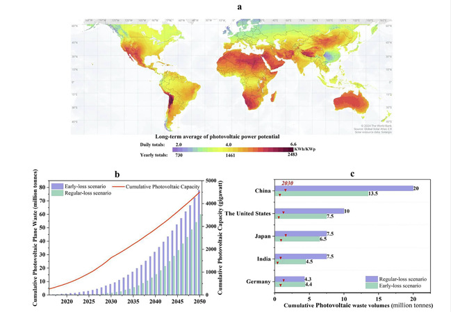 全球光伏安装潜力与面板废弃物预测图