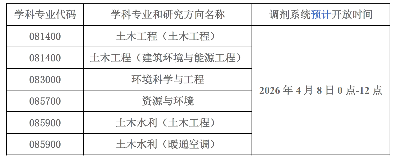 环境与建筑学院2026年接收调剂专业和调剂系统预计开放时间